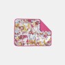 Trocador com plástico protetor, lavável, sendo um lado com estampa corrida e outro em tecido colorido liso, confeccionado meia-malha (100% algodão) e enchimento (100% poliéster).