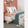 Almofada retangular, com 42cm X 23cm, confeccionada em tecido com estampa corrida com detalhe em tecido colorido liso em meia-malha 100% algodão. A almofada anunciada é a que está à frente. Imagem meramente ilustrativa.