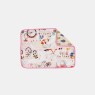 Trocador com estampa corrida em ambos os lados e plástico protetor em uma face, lavável, confeccionado em tecido meia-malha 100% algodão e enchimento 100% poliéster. Dimensões do trocador: 45cm x 60cm