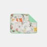 Trocador com plástico protetor, lavável, sendo um lado estampado e outro em tecido colorido, confeccionado meia-malha (100% algodão) e enchimento (100% poliéster).