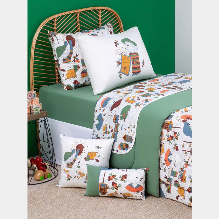 Almofada pequena, com 38cm X 38cm, com estampa local em tecido meia-malha 100% algodão. Não acompanha outras fronhas avulsas, lençol, edredom, almofadas, boneco e outros acessórios expostos na imagem. A almofada anunciada é a que está atrás. Imagem meramente ilustrativa.