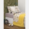 Almofada retangular, com 23cm x 42cm, sendo uma face tecido estampado com personagem e a outra tecido colorido em tecido meia-malha 100% algodão. Não acompanha outras fronhas avulsas, lençol, edredom, almofadas, boneco e outros acessórios expostos na imagem. A almofada anunciada é a que está á frente. Imagem meramente ilustrativa