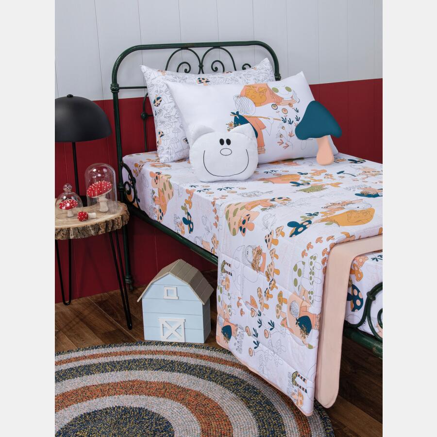 Almofada cogumelo, com 34cm X 28cm, tecido colorido na parte superior e na parte inferior, confeccionada em tecido em meia-malha 100% algodão.