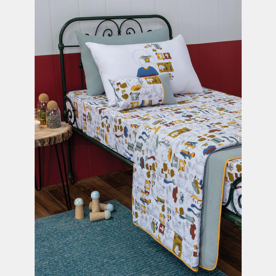 Almofada retangular, com 42cm X 23cm, com estampa corrida e tecido colorido em meia-malha 100% algodão. Não acompanha outras fronhas avulsas, lençol, edredom, almofadas, boneco e outros acessórios expostos na imagem. Imagem meramente ilustrativa.