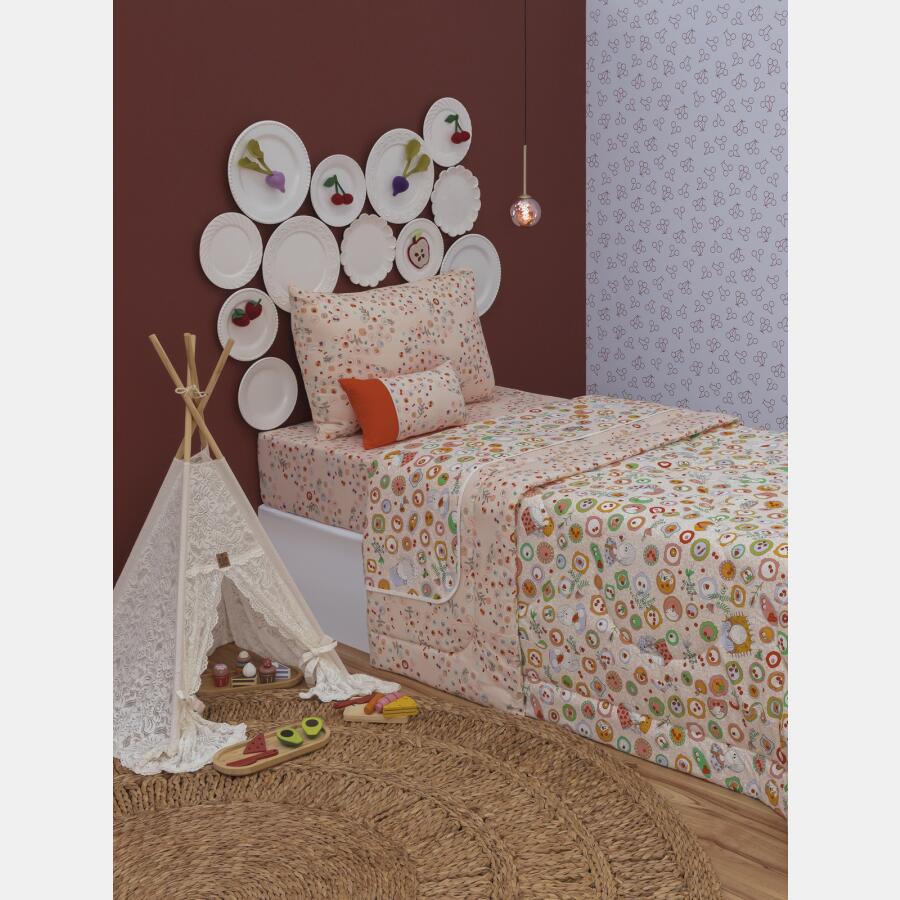 Almofada retangular, com 42cm X 23cm, estampa corrida e tecido colorido em meia-malha 100% algodão. Imagem meramente ilustrativa