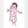 Kit body cavado composto por 3 unidades, sendo duas unidades com estampa corrida e uma com estampa local, confeccionados com tecido meia-malha 100% algodão.