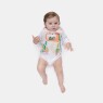 Kit body manga longa composto por 3 unidades, sendo duas unidades com estampa corrida e uma com estampa local, confeccionados com tecido meia-malha 100% algodão.
