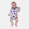 Kit body manga longa composto por 3 unidades, sendo duas com estampa local e uma com estampa corrida, confeccionados em tecido meia-malha 100% algodão. Não acompanha calça/mijão longo.