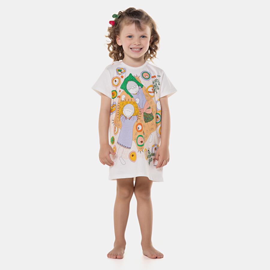 Camisão manga curta com estampa local, abertura por tic-tac para facilitar o vestir, confeccionado em tecido meia-malha 100% algodão.