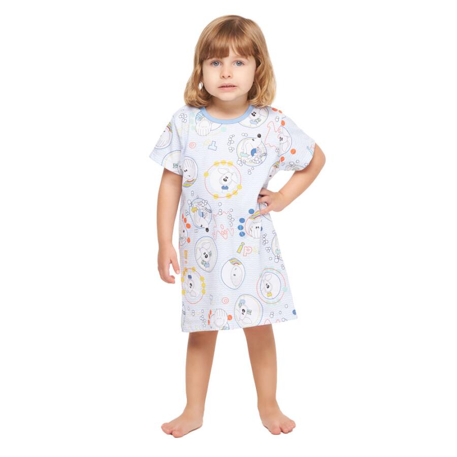 Camisão manga curta com estampa corrida e abertura por tic-tac para facilitar o vestir, confeccionado em tecido meia-malha 100% algodão.