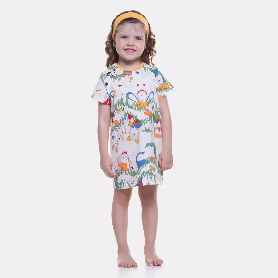 Camisão manga curta com estampa corrida e abertura por tic-tac para facilitar o vestir, confeccionado em tecido meia-malha 100% algodão.