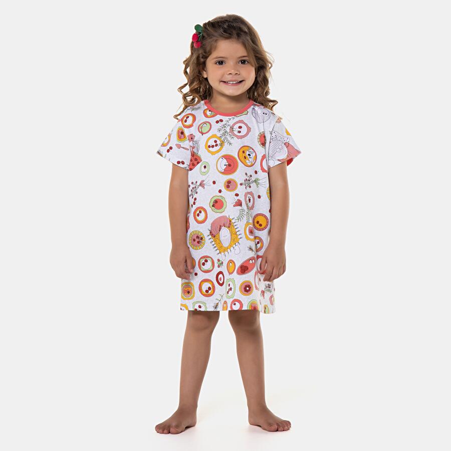 Camisão manga curta com estampa corrida, abertura por tic-tac para facilitar o vestir, confeccionado em tecido meia-malha 100% algodão.