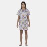 Camisão manga curta com estampa corrida e detalhe em viés no decote, confeccionado em tecido meia-malha 100% algodão.