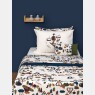 Colcha tamanho solteiro, sendo uma face tecido estampado com personagem e a outra tecido colorido, ambos meia-malha 100% algodão e enchimento 100% poliéster