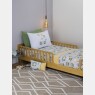 Colcha tamanho solteiro, sendo uma face tecido estampado com personagem e a outra tecido colorido, aconfeccionado em tecido meia-malha 100% algodão e enchimento 100% poliéster