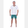 Conjunto clássico manga curta, decote V, bolso, bordado e short, confeccionados em tecido colorido meia-malha 100% algodão.