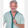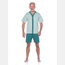Conjunto manga curta aberto com fechamento por botões, decote V, e short, confeccionados em tecido colorido meia-malha 100% algodão.