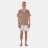 Pijama clássico manga curta, decote V, bolso, bordado e short, confeccionados em tecido colorido meia-malha 100% algodão.