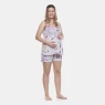Conjunto gestante regata com abertura por botões e short com estampa corrida, confeccionados em tecido meia-malha 100% algodão.