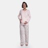 Pijama manga longa com em tecido colorido, abertura por botões e calça com estampa corrida, confeccionados em tecido meia-malha 100% algodão.