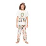 Conjunto manga curta com estampa local e calça com estampa corrida, confeccionados em tecido meia-malha 100% algodão.