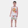 Conjunto regata com estampa local e bermuda com estampa corrida, confeccionados em tecido meia-malha 100% algodão.