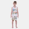 Conjunto regata com estampa local e bermuda com estampa corrida, confeccionados em tecido meia-malha 100% algodão.