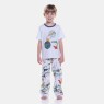 Conjunto manga curta com estampa local e calça com estampa corrida, confeccionados em tecido meia-malha 100% algodão.