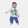 Conjunto manga longa com estampa local, abertura na gola por tic-tac para facilitar o vestir e calça em tecido colorido, confeccionados em tecido plush (74% poliéster / 26% viscose).