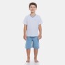 Conjunto manga curta, decote V, bordado, em tecido liso e bermuda em tecido colorido, confeccionados em tecido meia-malha 100% algodão.