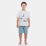 Conjunto manga curta com estampa local e bermuda em tecido listrado, confeccionados em tecido meia-malha 100% algodão.