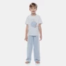 Pijama manga curta com estampa local e calça em tecido colorido, confeccionados em tecido meia-malha 100% algodão.