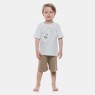 Pijama manga curta com estampa local, abertura com tic-tac para facilitar o vestir e bermuda com estampa listrada, confeccionados em tecido meia-malha 100% algodão.