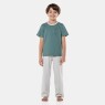 Pijama manga curta com estampa local e calça em tecido colorido, confeccionados em tecido meia-malha 100% algodão.