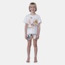 Conjunto manga curta com estampa local e short com estampa corrida, confeccionados em tecido meia-malha 100% algodão.