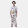 Conjunto manga curta com estampa local e calça com estampa corrida, confeccionados em tecido meia-malha 100% algodão.