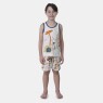 Conjunto regata com estampa local e bermuda com estampa corrida, confeccionados em tecido meia-malha 100% algodão.