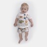 Conjunto manga curta com estampa local, abertura na gola por tic-tac para facilitar o vestir e short com estampa corrida, confeccionados com tecido meia-malha 100% algodão.