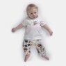 Conjunto manga curta com estampa local, abertura na gola por tic-tac para facilitar o vestir e calça com estampa corrida, confeccionados com tecido meia-malha 100% algodão.