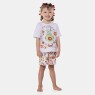 Pijama manga curta com estampa local, abertura na gola por tic-tac para facilitar o vestir e short com estampa corrida, confeccionados com tecido meia-malha 100% algodão.