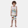 Pijama regata com estampa local e bermuda com estampa corrida, confeccionados em tecido meia-malha 100% algodão.