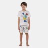 Pijama manga curta com estampa local e bermuda com estampa corrida, confeccionados em tecido meia-malha 100% algodão.