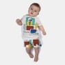 Pijama manga curta com estampa local, abertura na gola por tic-tac para facilitar o vestir e short com estampa corrida, confeccionados com tecido meia-malha 100% algodão.
