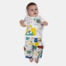 Pijama manga curta com estampa local, abertura na gola por tic-tac para facilitar o vestir e calça com estampa corrida, confeccionados com tecido meia-malha 100% algodão.