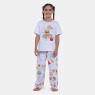 Pijama manga curta com estampa local e calça com estampa corrida, confeccionados em tecido meia-malha 100% algodão.