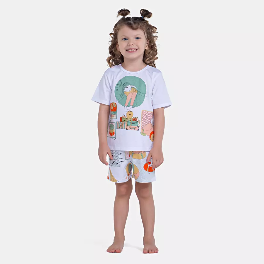 Pijama Infantil Feminino Manga Curta e Short