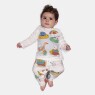 Pijama manga longa com estampa local, abertura na gola por tic-tac para facilitar o vestir e calça com estampa corrida, confeccionados com tecido meia-malha 100% algodão.