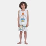 Pijama regata com estampa local e bermuda com estampa corrida, confeccionados em tecido meia-malha 100% algodão.