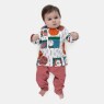 Pijama manga longa em tecido colorido e calça em tecido canelado, confeccionados em tecido meia-malha 100% algodão.