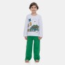 Pijama manga longa com estampa local e calça com estampa corrida, confeccionados em tecido moletinho peluciado (50% algodão / 50% poliéster).